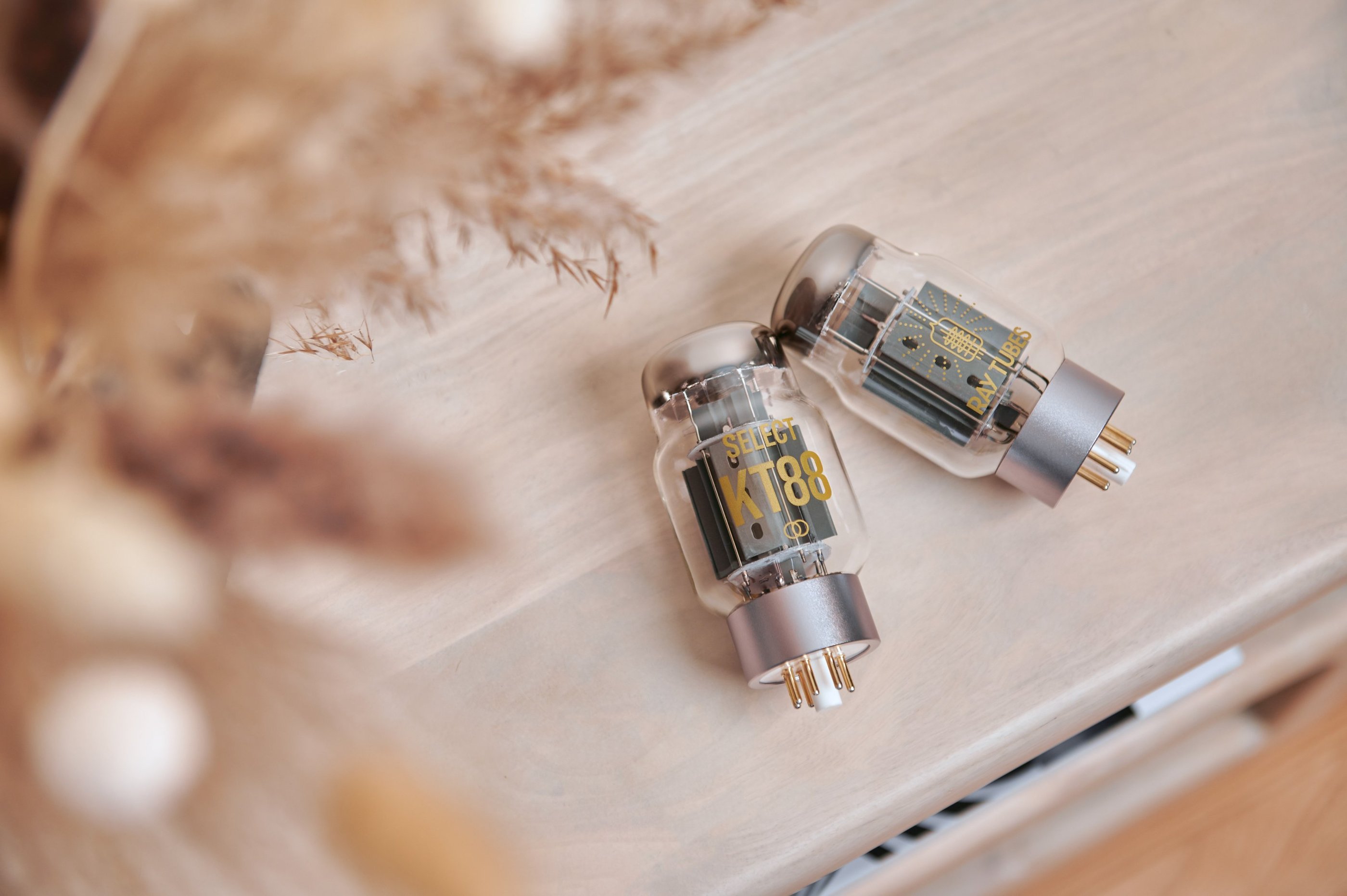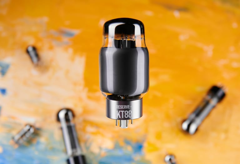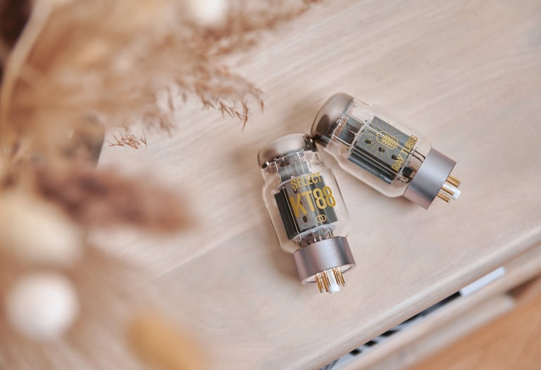 The Ray Tubes KT88 SELECT Vacuum Tubes enhance your Limestone amplifier with exceptional improvements in clarity, texture, and detail, thanks to meticulous, engineer-led selection and gold pins for superior conductivity and durability.